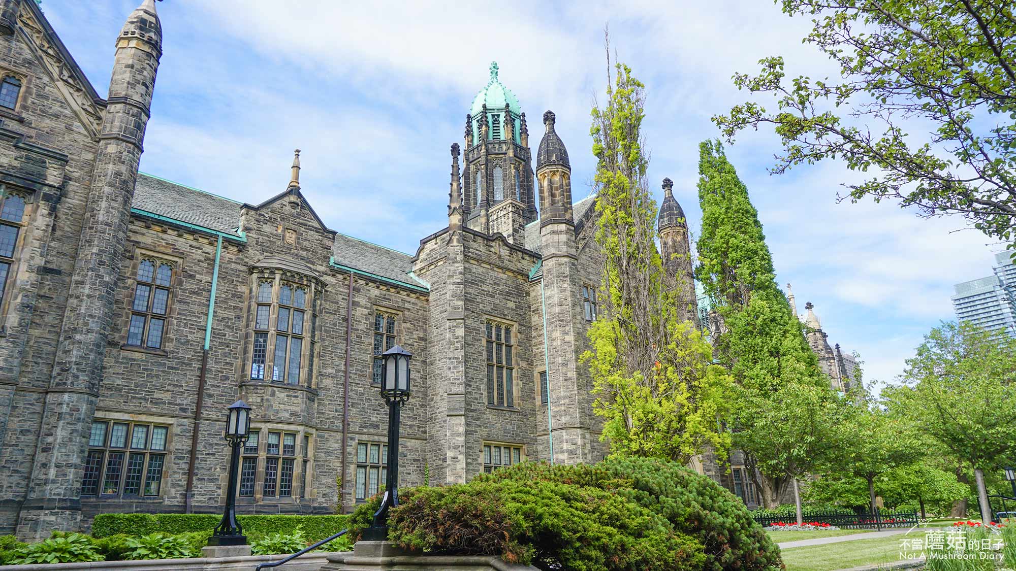 多倫多大學就坐落在安大略省議會和皇后公園旁邊,跟一般歐美大學一樣,他們不會和台灣的大學一樣特別畫出學校的範圍,而是一棟一棟在不同街區的建築形成一整個校區。
